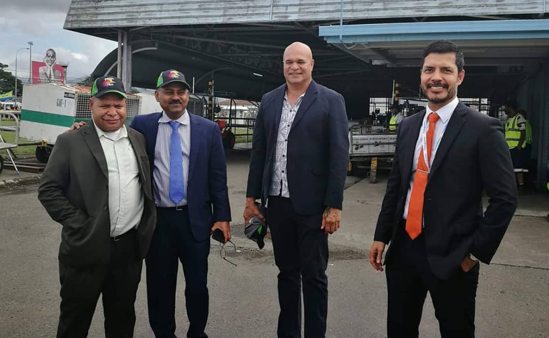 Pictured at Nadzab Airport, from the left is Governor Hela Philip Undialu; Minister for State Owned Enterprises, Regional Member West New Britain Sasindran Muthuvel; Minister for Lands & Lae Open Member John Rosso; and Minister for Police and Madang Open Member Bryan Kramer.