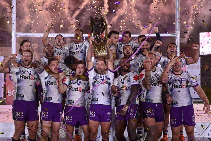 Storm defeating Penrith 26-20, earning the NRL 2020 title.